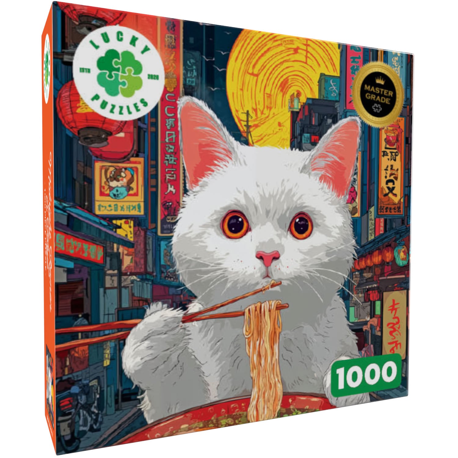 Slip into a quiet moment on a loud Tokyo street. Midnight Ramen in Tokyo turns a whimsical, neon-lit scene into a deeply satisfying 1000 piece puzzle for adults, where a focused, slightly awkward cat enjoys a steaming bowl of ramen. Each section draws you further into the rhythm of the city and the calm of a late-night ritual.