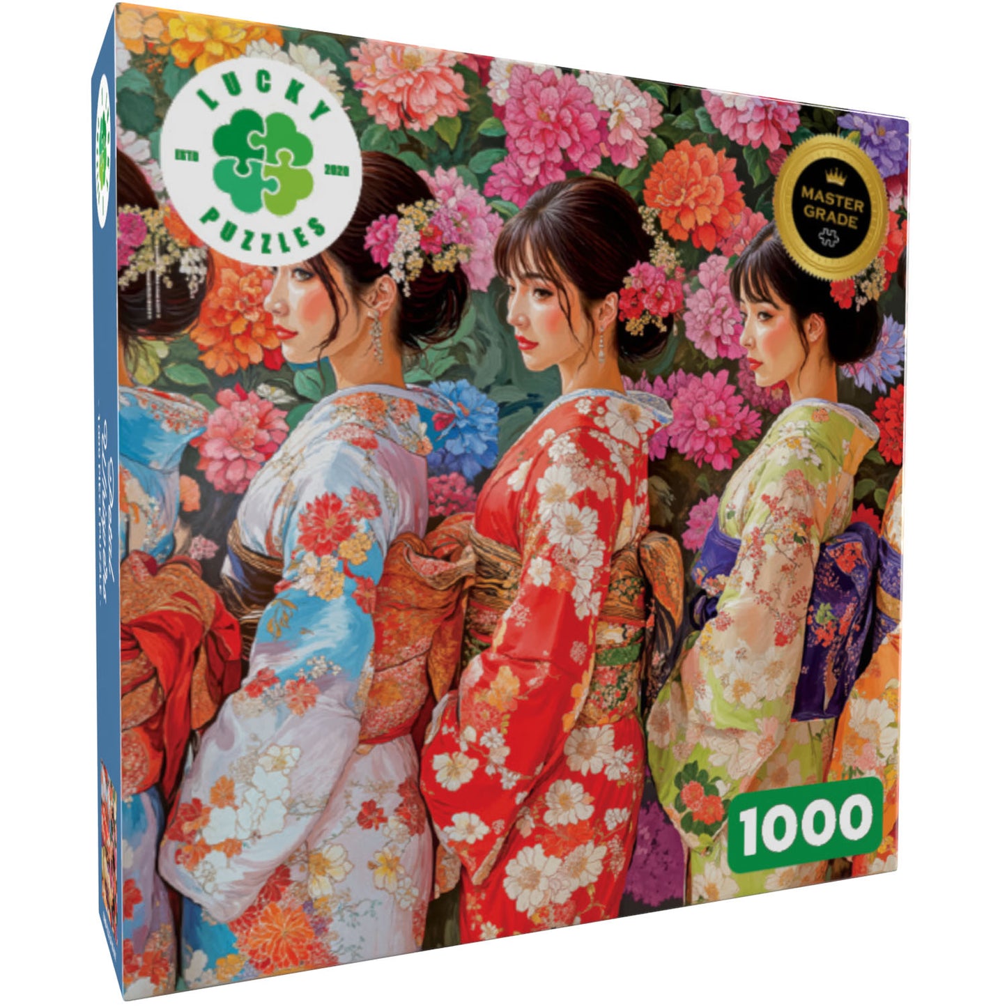 Lucky Puzzles Presents: "Petal Whispers: A Geisha’s Harmony"– A Masterpiece in 1000 Pieces Some puzzles are just puzzles. This is an experience. Picture yourself stepping into a world of timeless elegance and artistry. Five graceful women, draped in exquisite kimonos, stand poised against a vibrant sea of blooming begonias. Every detail—every stroke of color—whispers of culture, beauty, and serenity. This 1000-piece puzzle for adults isn’t just a pastime; it’s a journey into tradition, precision, and artistry.